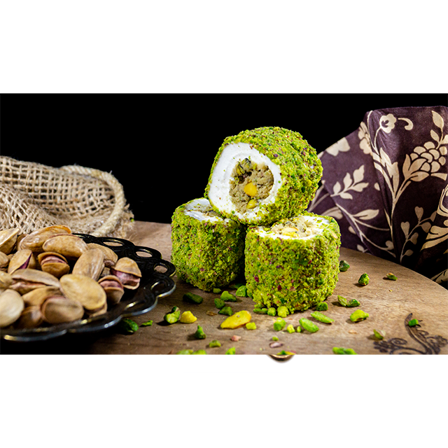 Delícia Turca Recheada com Creme de Pistache de Baixo Teor de Açúcar de Alta Qualidade, Barra com Sabor Frutado Embalada em Caixa com Pó de Pistache